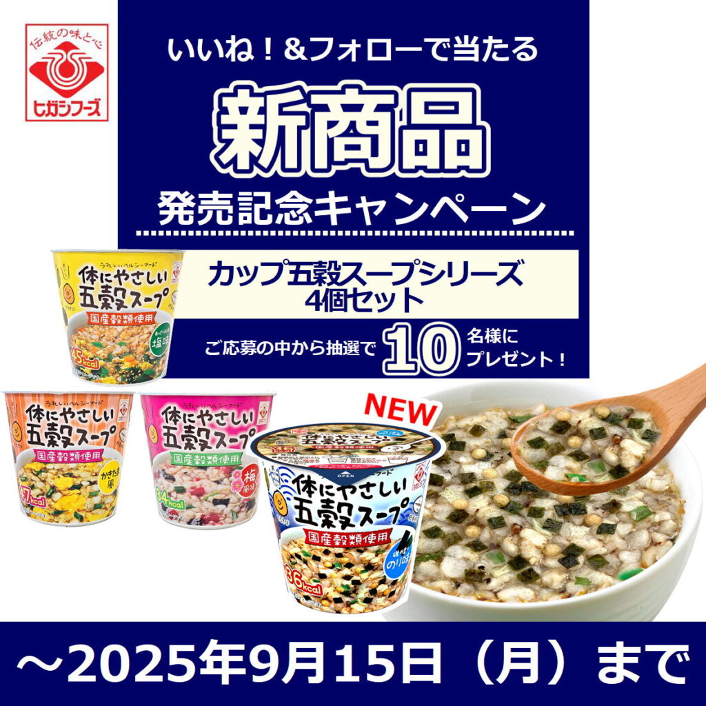 いいね!&フォローでヒガシフーズ商品が当たる